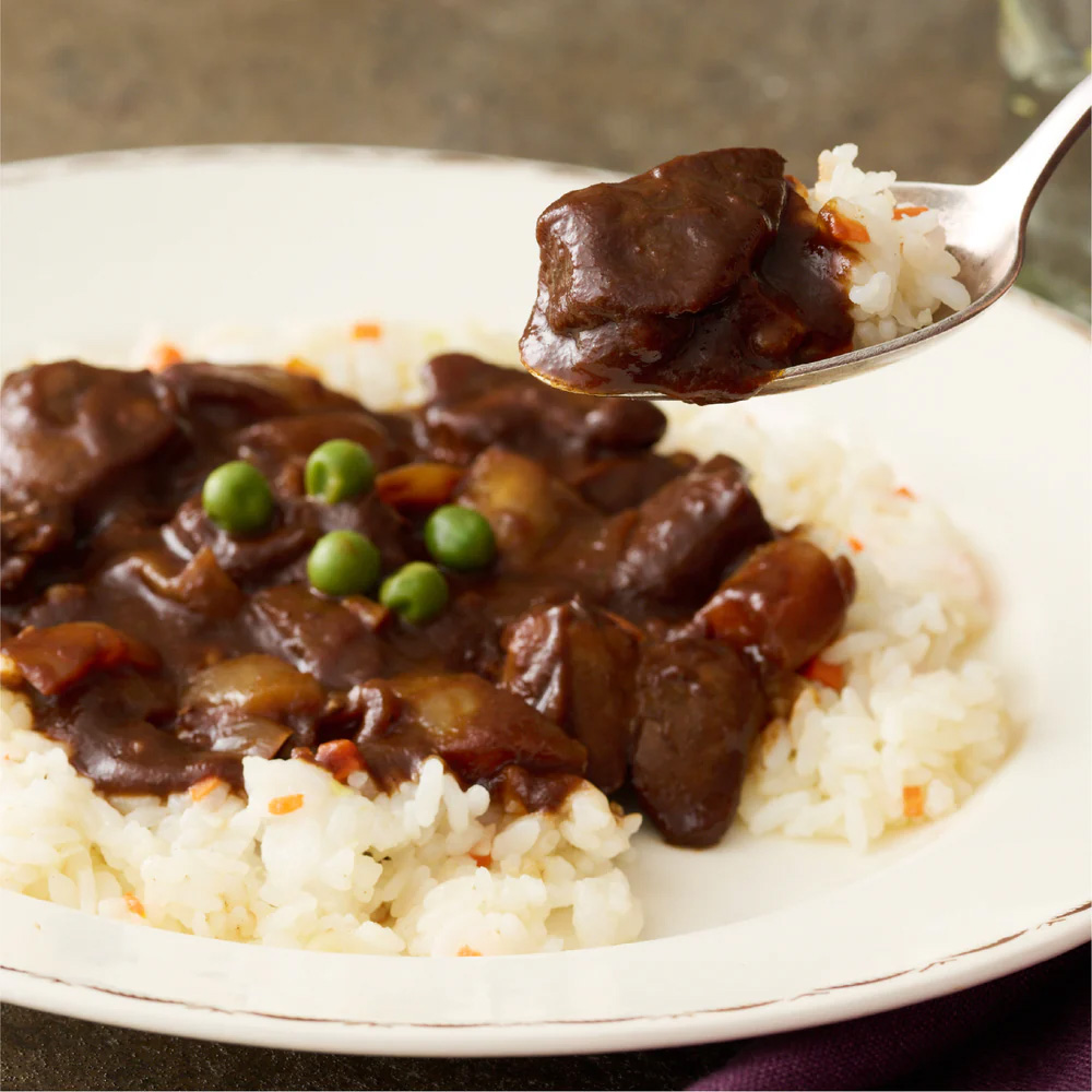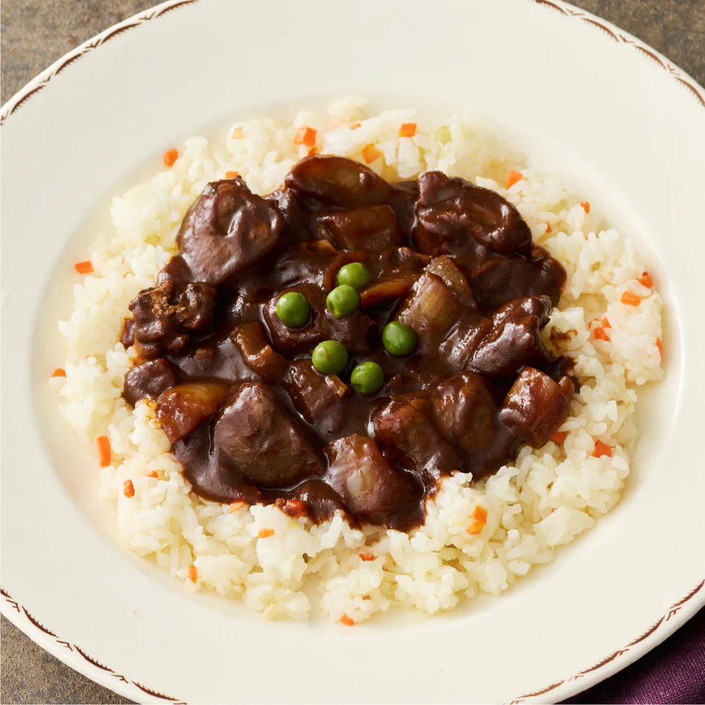 濃厚な旨味をたたえた鶏レバーとハツが、じっくり炒められ、甘味と酸味が絶妙に調和した自家製デミグラスソースで丁寧に煮込まれています。コク深いバターライスとの組み合わせが、素材の美味しさを一層引き立て、口の中で広がる濃密な風味が後を引きます。ソースの後味は軽やかで、豊かなコクがありながらも重すぎず、バランスの取れた仕上がり。自宅で本格的な料理を楽しみたい方にぴったりの逸品で、特別なひとときを演出してくれるでしょう。