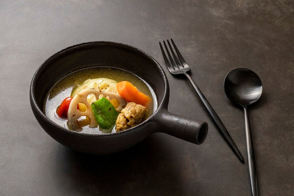 豚肉の旨味がぎゅっと詰まった、柔らかくてジューシーな角煮をスープカレーに贅沢に使用しました。長時間かけて丁寧に煮込むことで、豚肉の繊維がほぐれ、味わい深い食感が楽しめます。しっかりとした豚の旨味がスープに溶け込み、スパイシーながらも優しい味わいのスープカレーに仕上げています。心温まるこの一皿は、オープン当初から多くのお客様に愛され続けている自慢のメニューです。ひとくちごとに広がる深い味わいで、心も体もほっと温まるひとときをお楽しみください。
