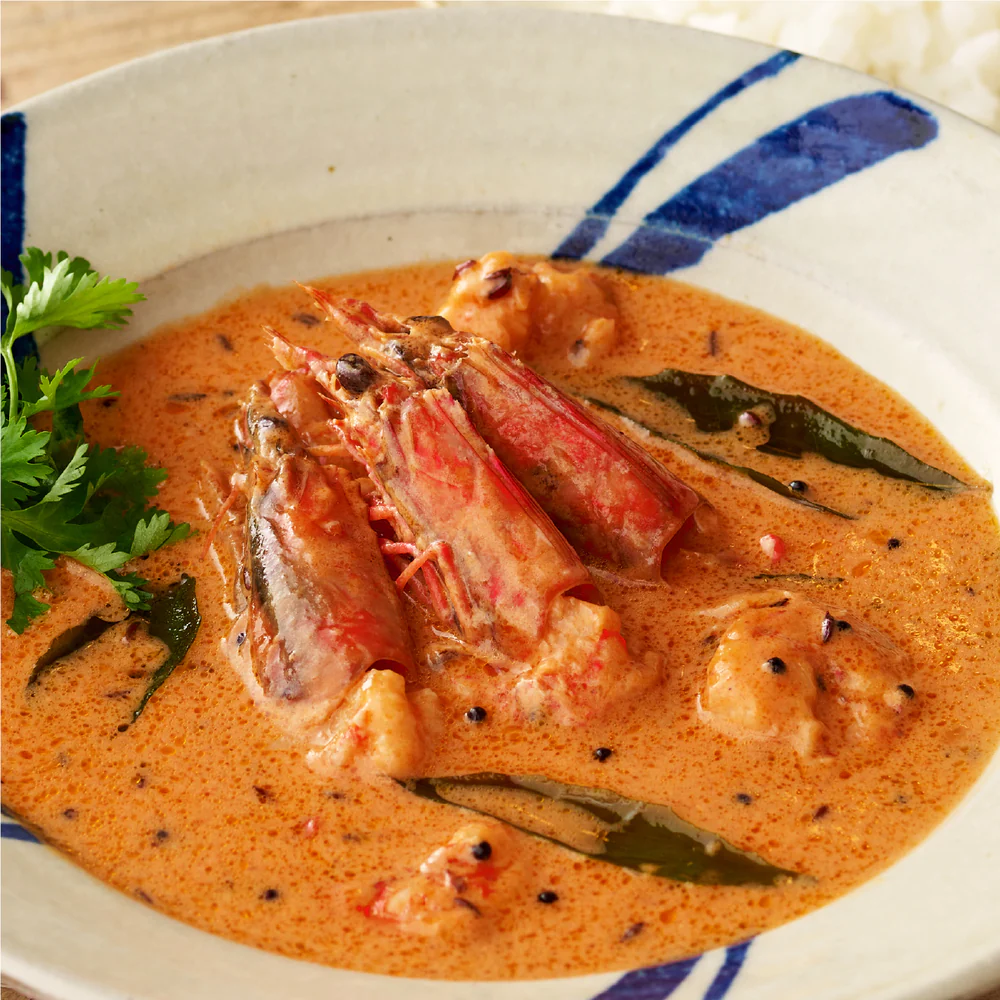 石垣島の透き通る海で大切に養殖された車えびを贅沢に使用した特別なカレー。ぷりぷりの車えびは、皮をむき、頭もお召し上がりいただけるように丁寧に仕上げています。トマトの酸味、バターのコク、ココナッツの豊かな甘みが一体となったクリーミーなカレーソースは、香り高いスパイスがアクセント。車えびの旨味が引き立つ贅沢な味わいを楽しめます。 お店では選べる辛さではありますがmitaseruでは小辛を開発。マイルドな小辛はお子様にも楽しんでいただける優しい辛さです。