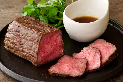 みかくが一頭買いした但馬種雌牛のもも肉の中から、特に柔らかい部位を厳選し、真空低温調理でじっくりとローストビーフに仕上げました。肉本来の濃厚な旨味がしっかりと引き出され、しっとりとした食感が口の中で広がります。熟練の技術で仕上げられたこのローストビーフは、一口ごとに贅沢な味わいをお楽しみいただける逸品です。上質な肉の豊かな風味を、ぜひそのままご堪能ください。