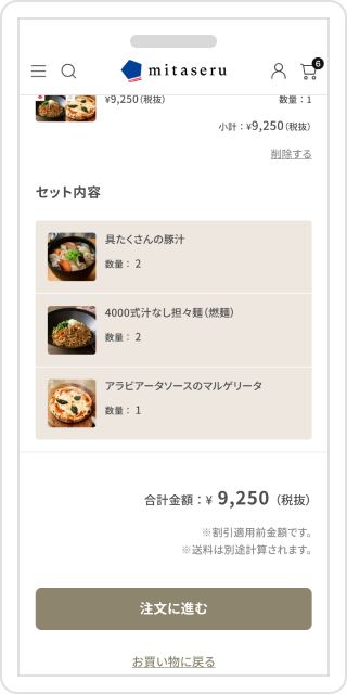 • カート画面で「注文に進む」を押して