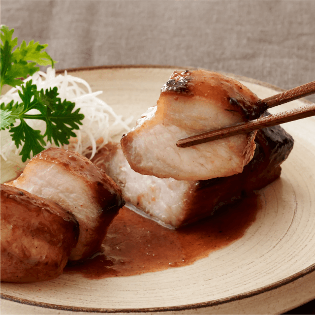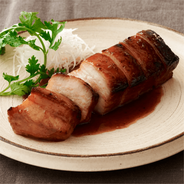この広東チャーシューは、海鮮醤や五香粉、香菜、揚げニンニク、玫瑰露酒などの香り豊かな漬けタレにじっくり漬け込まれています。オーブンで丁寧に焼き、何度も水あめを塗り重ねることで、特有の美しい照りと深い味わいを実現しました。時間と手間を惜しまず作り上げたこのチャーシューは、広東の伝統的な美味しさを堪能できる逸品です。