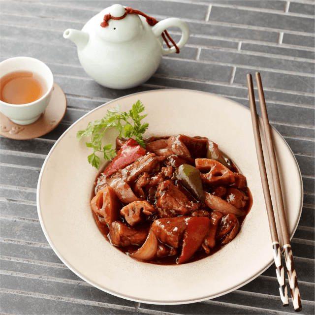 仕上げには、喜記オリジナルの熟成黒酢ソースをたっぷり絡めています。この特製ソースは、黒酢のまろやかな酸味と深いコクが特徴で、豚肉のジューシーさと見事に調和します。甘酸っぱいソースが、食欲を引き立て、一口ごとに満足感を与えてくれる逸品です。