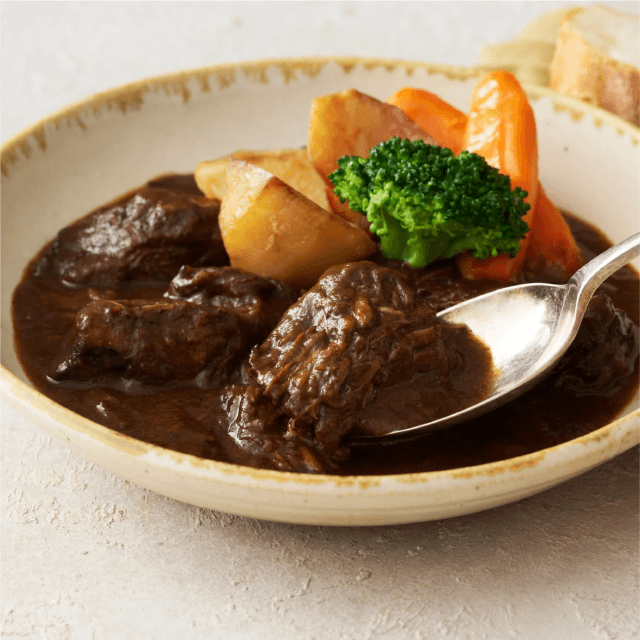 A5等級の黒毛和牛を贅沢に使用し、長時間かけて旨味を引き出したビーフシチュー。すき焼きの名店が手がけた特製ブイヨンに、和牛の濃厚なコクと野菜の自然な甘さが織り成す絶妙なハーモニーが特徴です。煮込みの過程で素材本来の味わいを最大限に引き出し、家庭の食卓でありながら、まるで高級レストランのような深い味わいを提供します。お皿に盛りつけるだけで、豊かな香りとともに本格的な料理の雰囲気を楽しむことができる、まさに至福の一皿です。