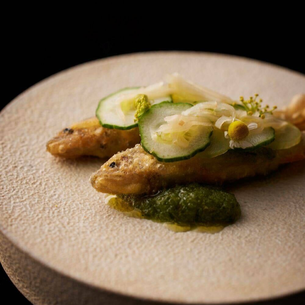 グルメガイド『東京最高のレストラン2025』に選出されたほどの実力。フランス、イタリア、日本の三国の技術と素材を融合させた独自のメニューは、季節ごとに変わる日本の風土を感じさせるものばかりです。