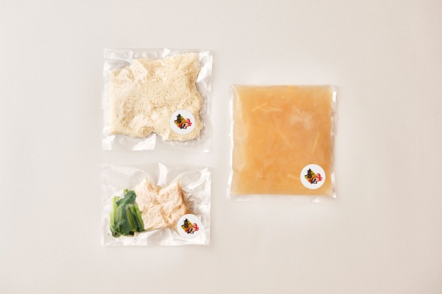 具材とスープを冷凍状態のまま湯煎してください。沸騰したお湯に冷凍のままの麺を袋から取り出し、ほぐしながら茹でてください。スープをどんぶりに移し麺を入れ、具材をのせてお召し上がりください。