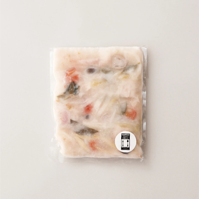 スープを冷凍状態のまま、沸騰したお湯に約10分入れ湯煎してください。湯煎後パックから取り出し、お好みの器に盛りつけてお召し上がりください。