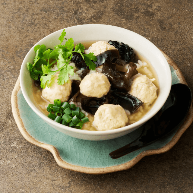 1つ1つ丁寧に手作りした鶏ひき肉団子と黒木耳をトッピングに加えた人気メニューです。具材のそれぞれの歯応えが咀嚼によって満腹感を増長させます。
