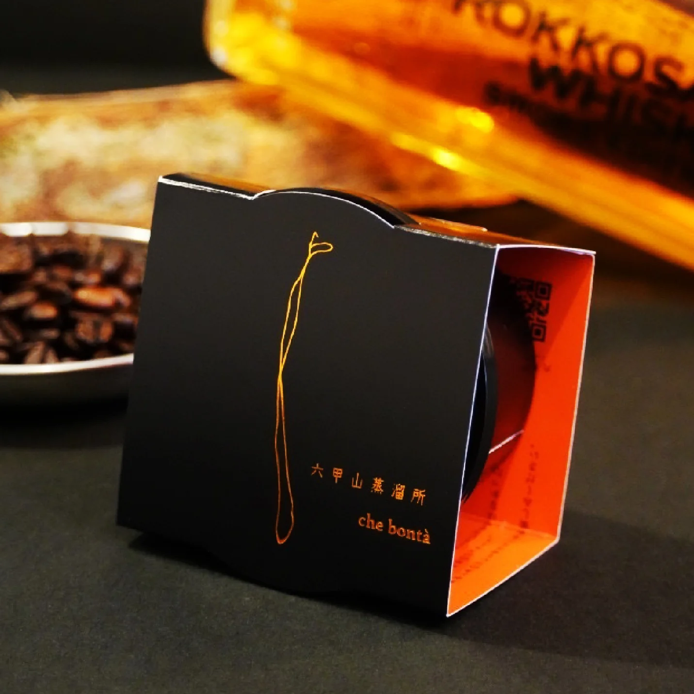 che bontà × 六甲山蒸溜所の渾身の商品。六甲山蒸溜所の名品「六甲山ピュアモルトウイスキー・スモーキーエディション」を最大限練りこみ、エスプレッソで味付けした味は大人が楽しむ一品。