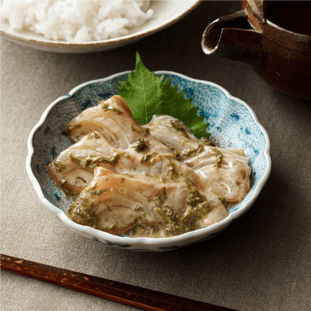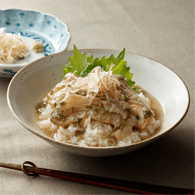SEA VEGETABLEの生あつばアオサが持つ、瑞々しい磯の香りと、香ばしい胡麻の風味が、鯛茶漬けのタレと絶妙に調和した一品です。シンプルながらも贅沢な味わいで、海と大地の恵みを存分に感じていただける、上品な鯛茶漬けです。