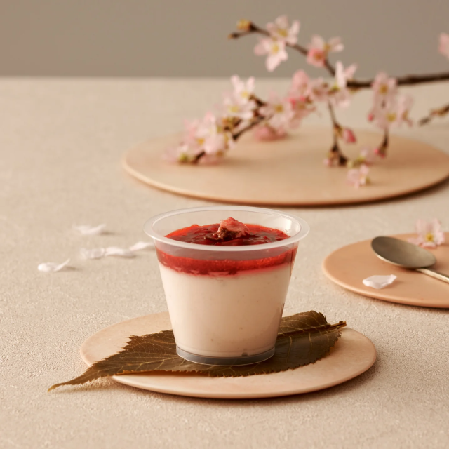 鮮やかな色合いの苺ソースをトッピングした下には、まろやかな生クリームをベースに桜あんを織り交ぜた特製の桜パンナコッタが。桜あんの微かな甘さと桜の香りが、生クリームのコクと見事に調和し、口の中で溶けるような優しい味わいを生み出し、甘酸っぱい苺の風味が、桜パンナコッタの繊細な味わいを引き立てます。一口食べれば、まるで春の訪れを感じられるスイーツです。