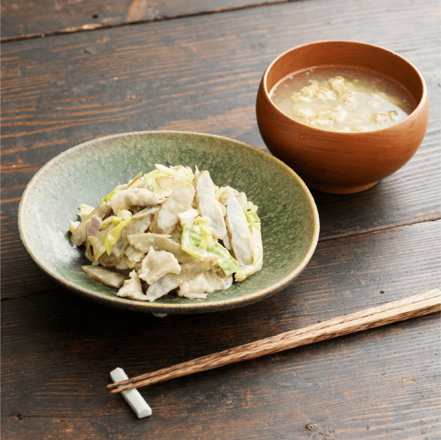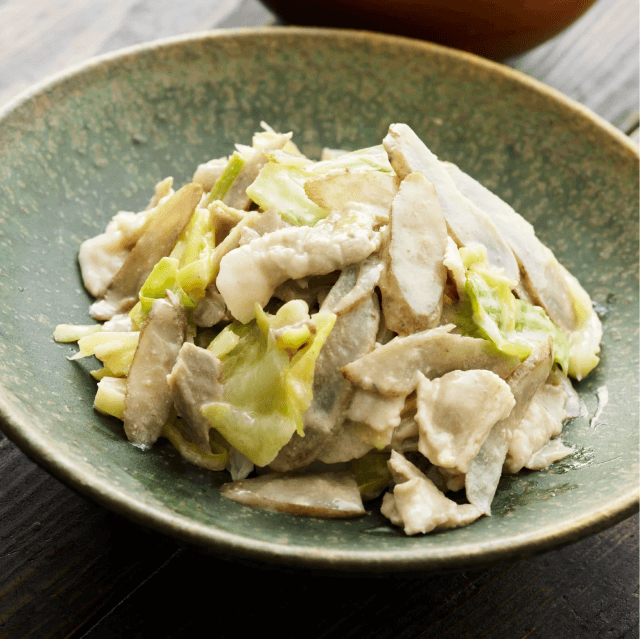 【キャベツとごぼうと豚バラの味噌マヨ和え】