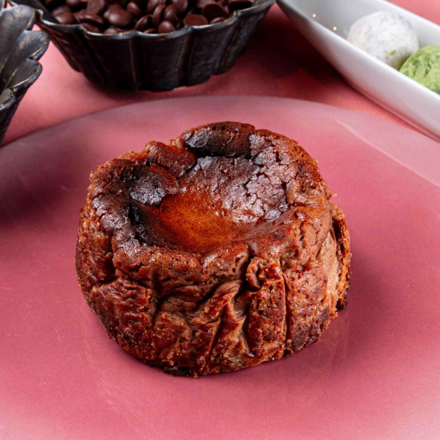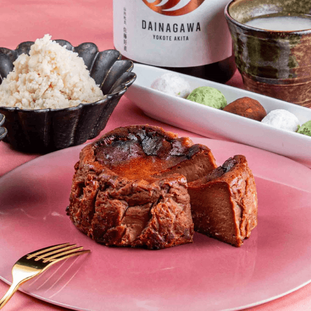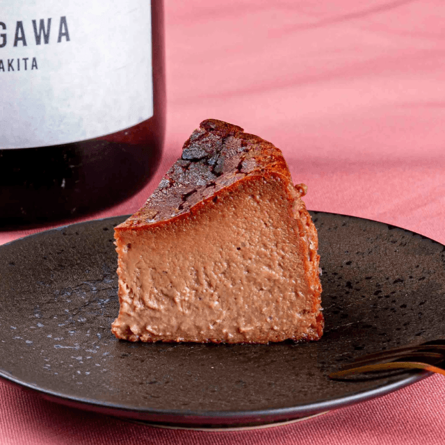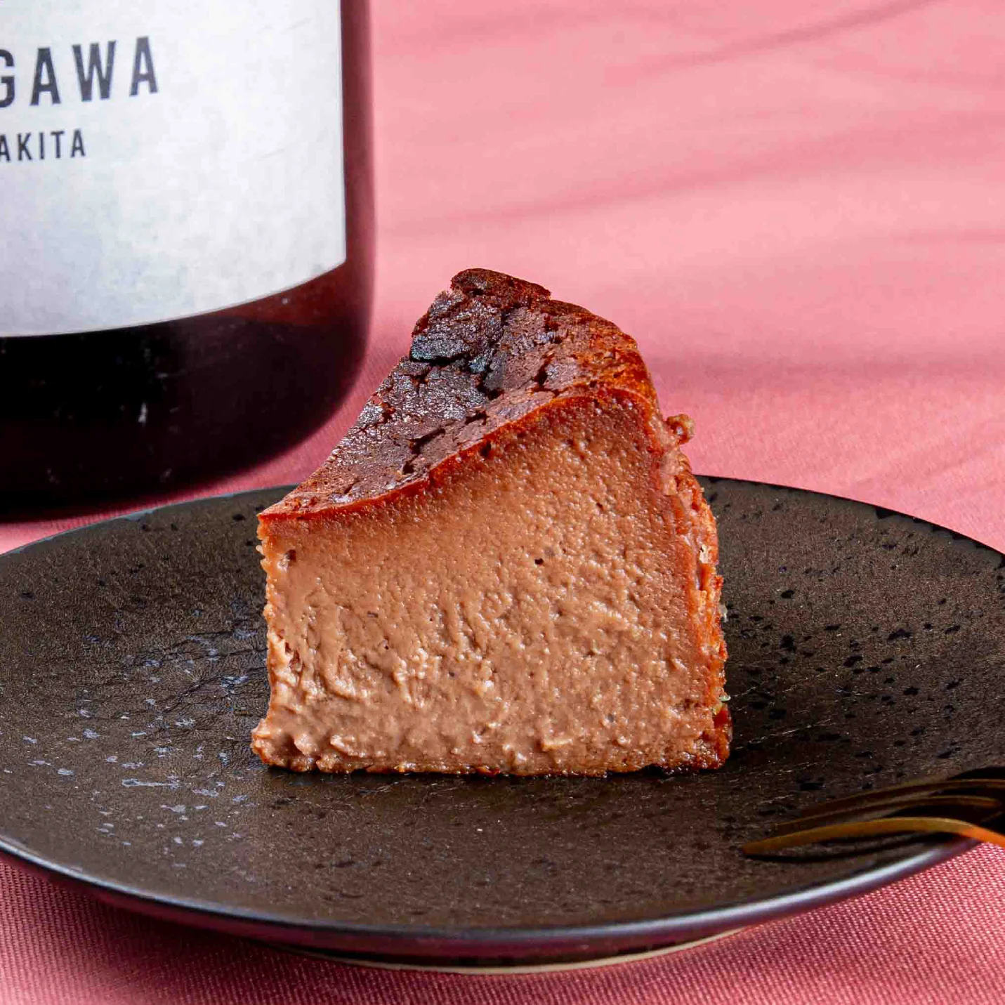 酒蔵「大納川」の酒粕を使ったチョコレートバスクチーズケーキです。