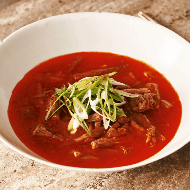 牛肉を煮込んでつくる韓国独特の食べるスープ「ユッケジャン」。厳選された和牛を長時間強火で煮込みコクのあるスープを引き出します。