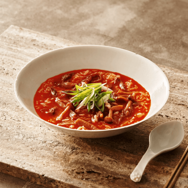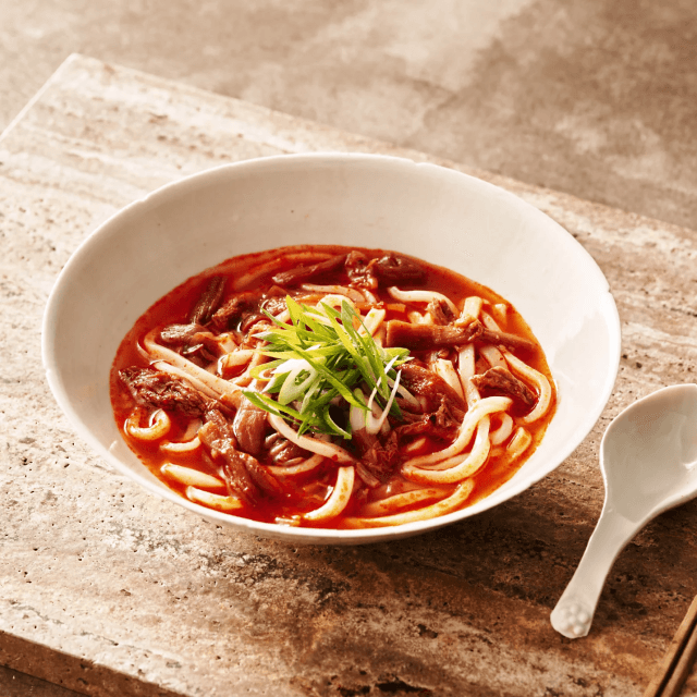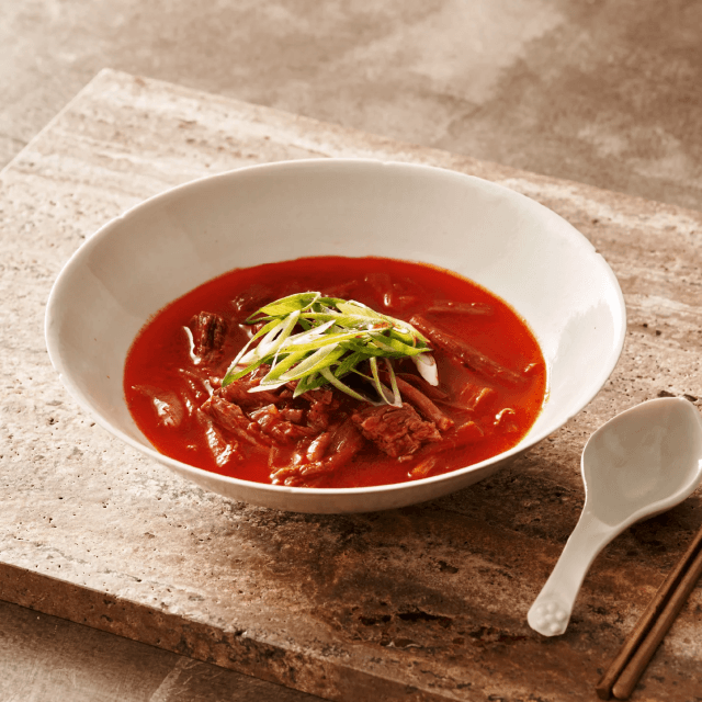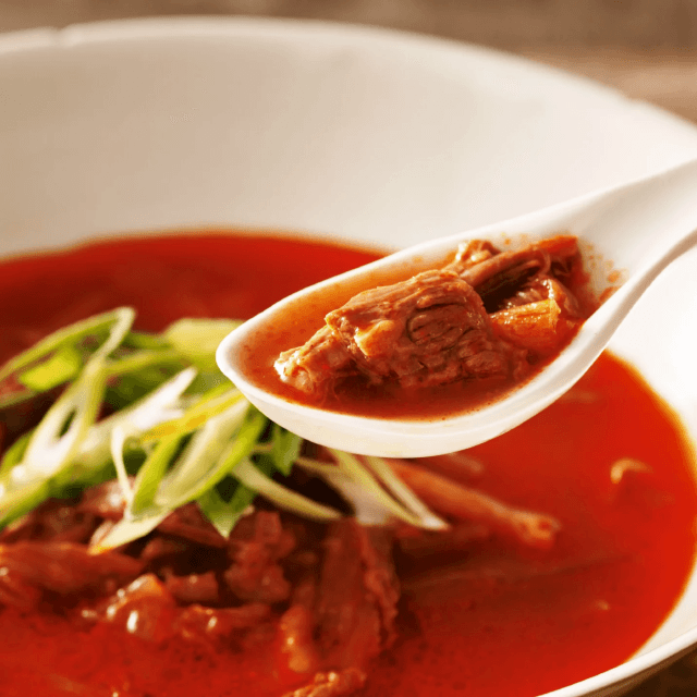 使用する唐辛子は「天日干し唐辛子」。ユッケジャンの見た目に反しまろやかで深みのある辛さ、ほんのりとした甘味、鮮やかな色を引き出すことができます。
