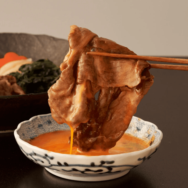 日本橋小伝馬の地にて明治2(1869)年から150年以上守られる味。醤油ベースのすっきりした割下に、黒毛和牛の旨味とコク、野菜の甘味が混ざり合い、唯一無二のハーモニーを奏でます。