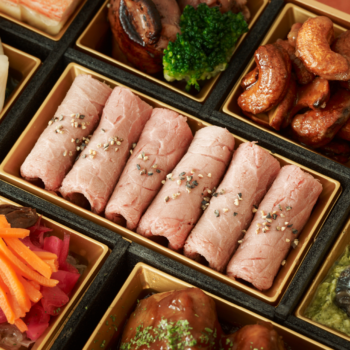たいめいけんならではの洋食の彩りで、華やかなおせちに仕上げました。三代にわたり受け継いできた味わいを、新しい年の食卓でぜひお楽しみください。