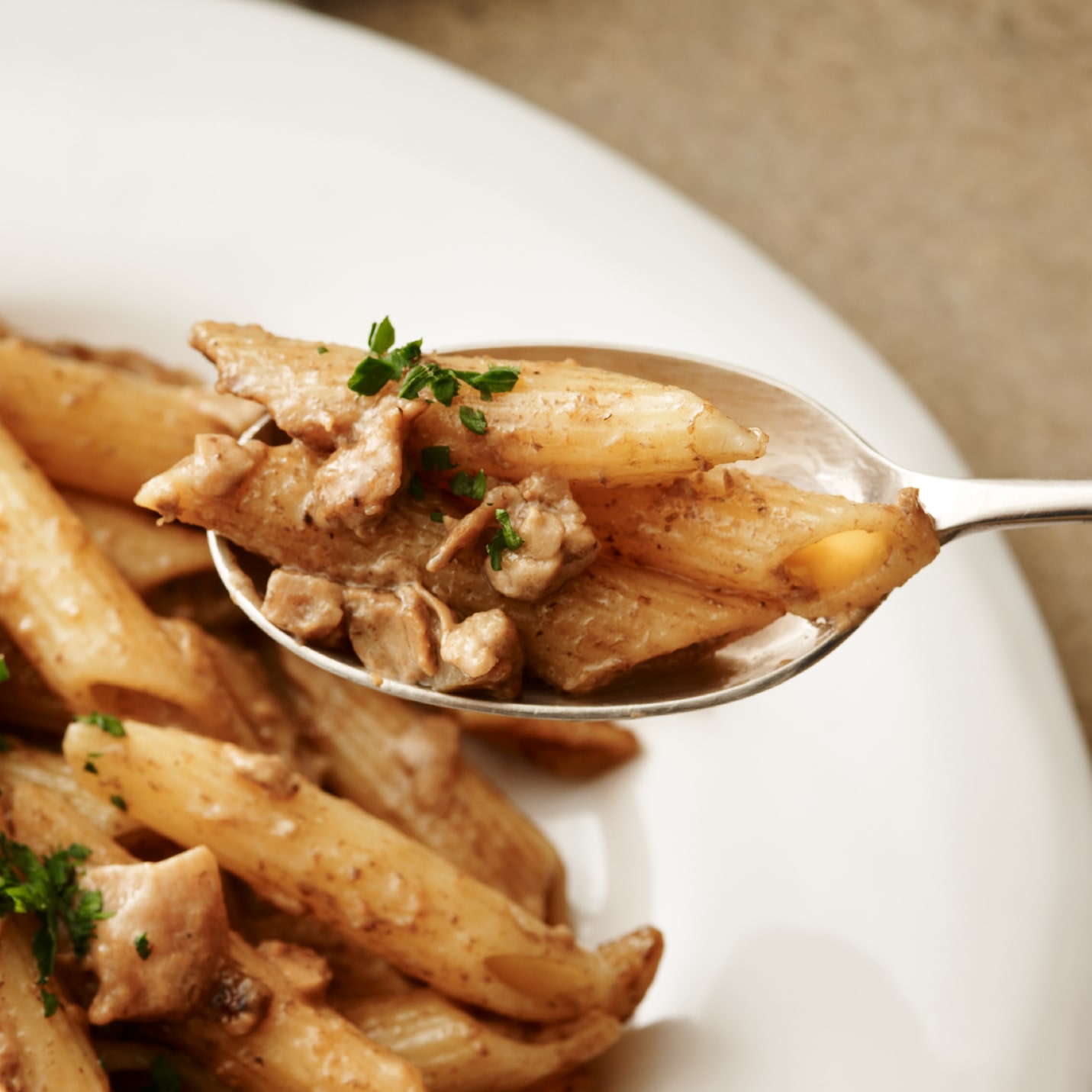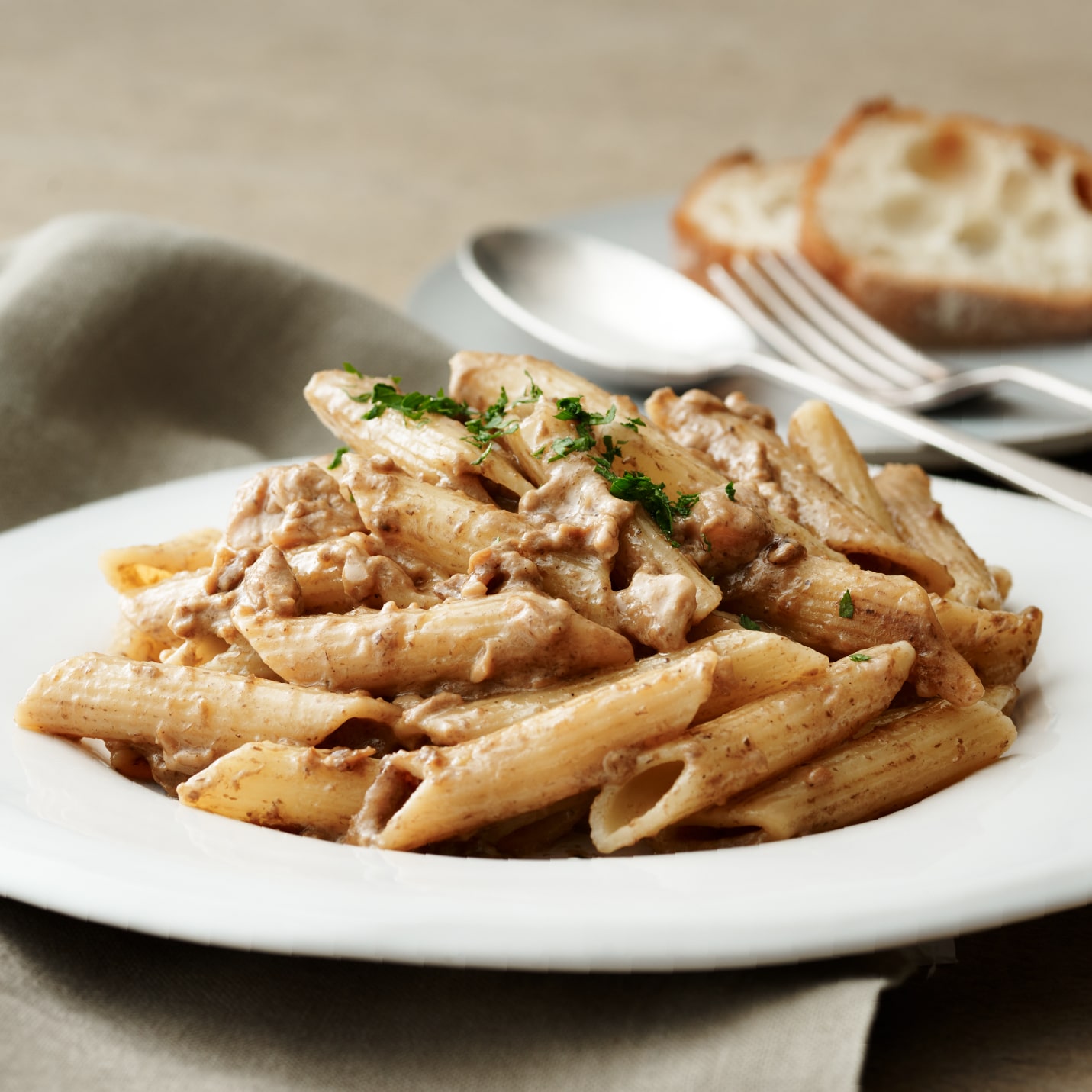 アロマフレスカ銀座の味を再現した贅沢なポルチーニ茸のクリームペンネ。