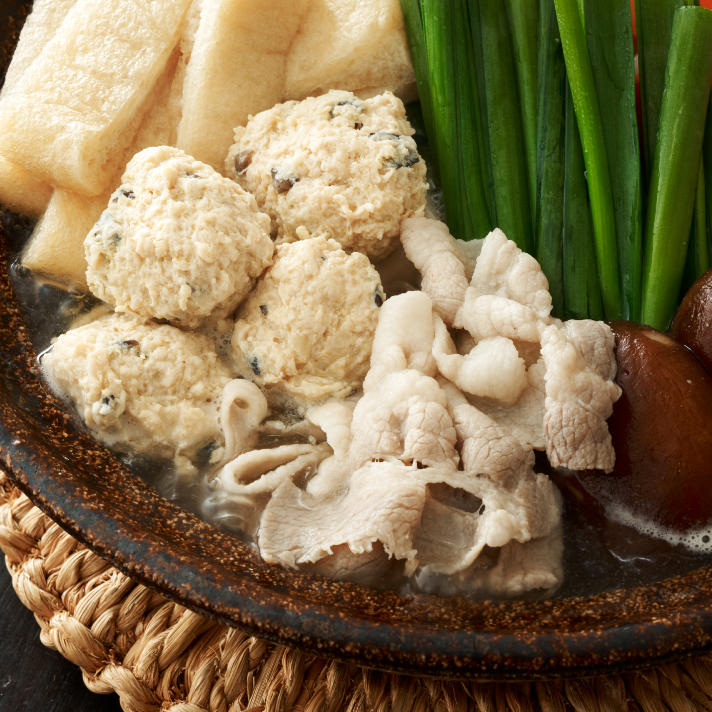 「相撲茶屋 佐賀昇」が誇る塩ちゃんこ鍋は、秘伝のスープに、きくらげ入りで国産鶏肉にこだわった柔らかい鶏団子と、野菜を合わせた逸品。優しい味わいが広がり、何度でも食べたくなります。