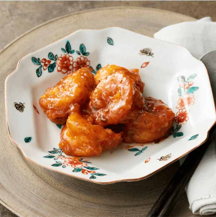 エビチリを沸騰したお湯に約10分入れ湯煎してください。 湯煎後、袋を軽く振って中身を混ぜてからお皿に盛り付けお召し上がりください。